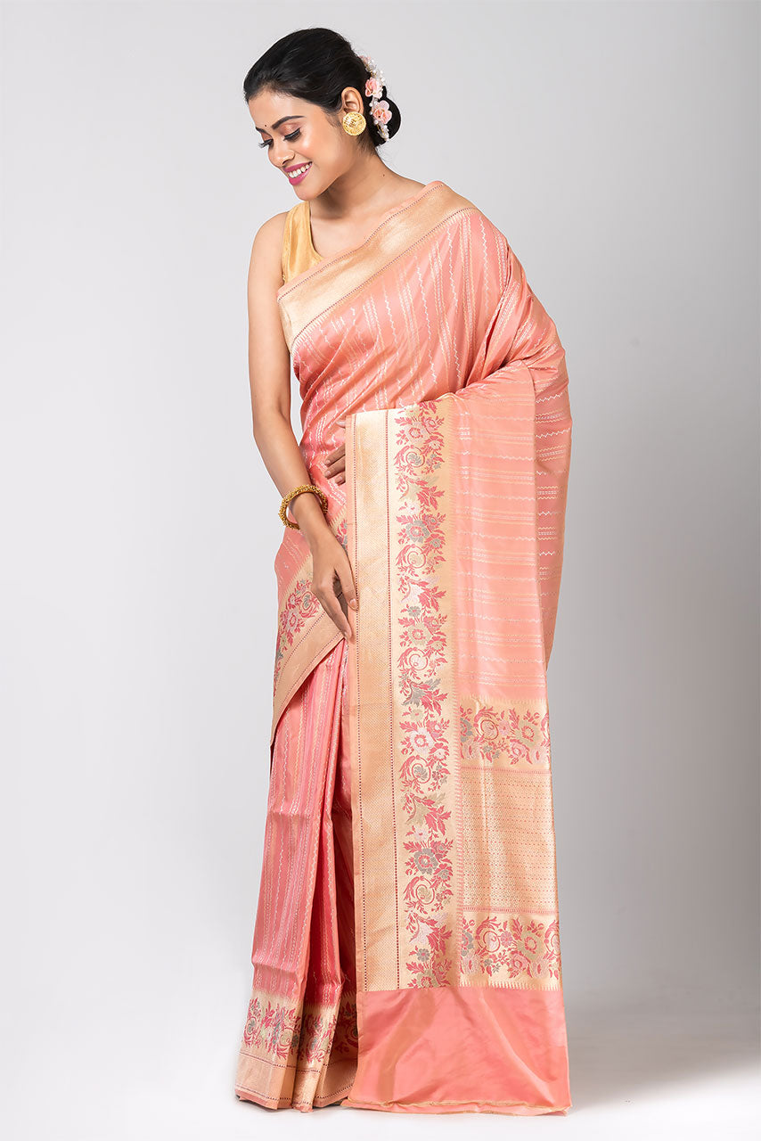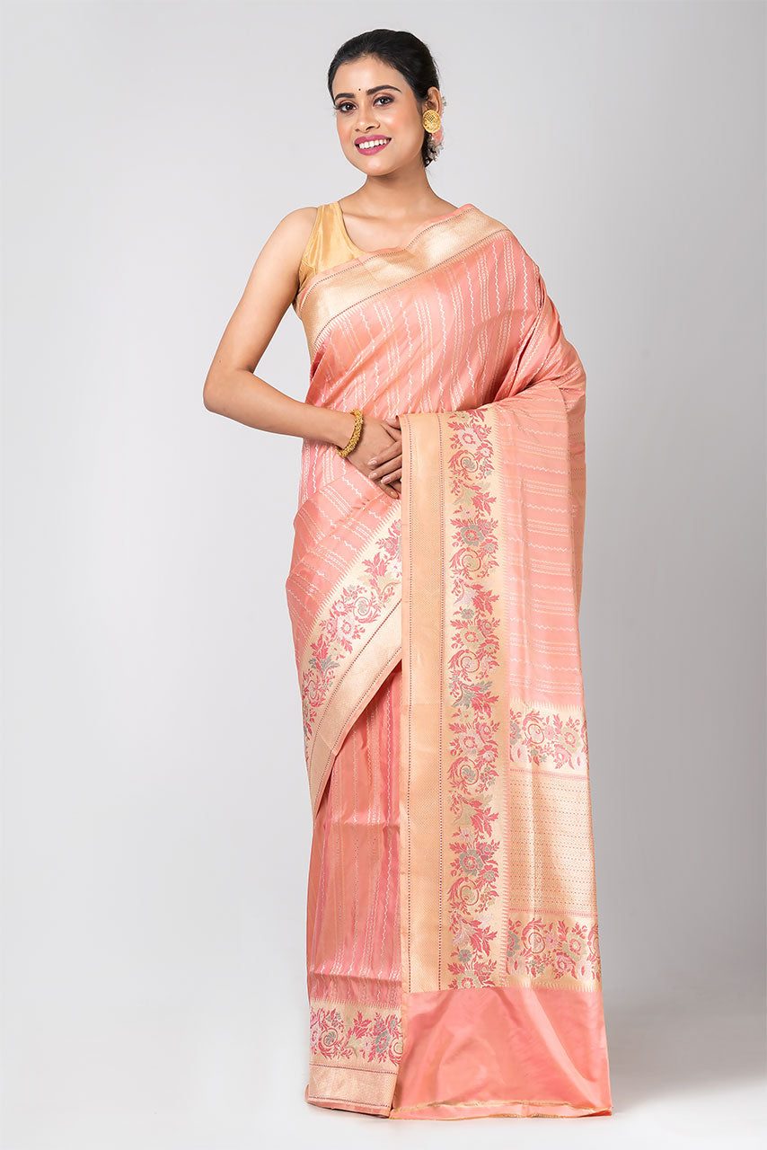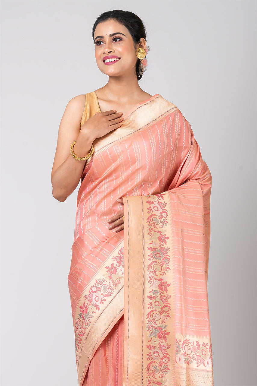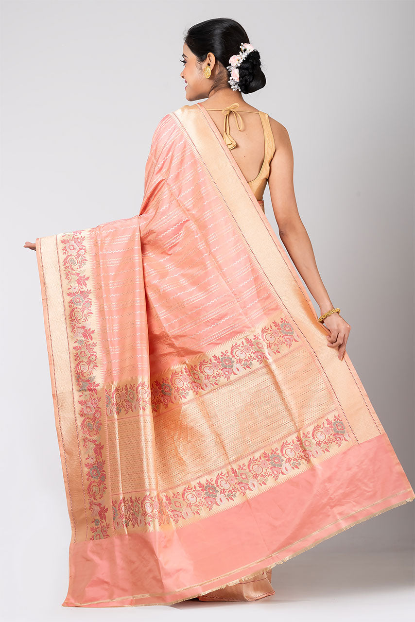 Manorama (Peach Silk Saree with Silver Zari Stripe)